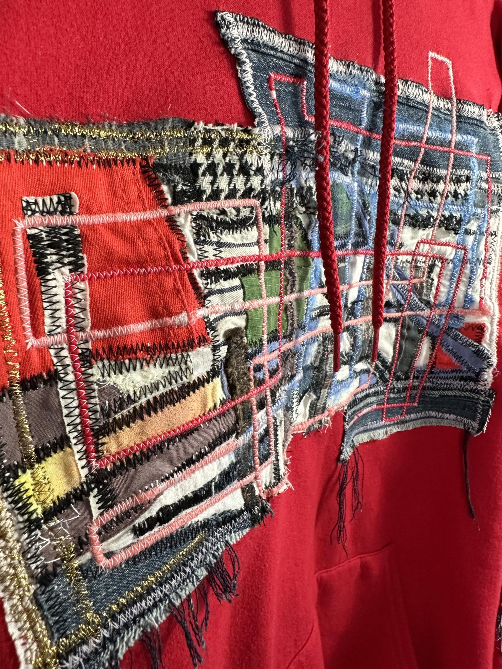 Since all my clothing items are crafted by hand or reworked, it’s important to note that there might be slight discolouration, small stains, intentional fraying, and imperfect stitching. These elements contribute to the distinct character and history of each piece, enhancing the unique charm of my handcrafted creations.